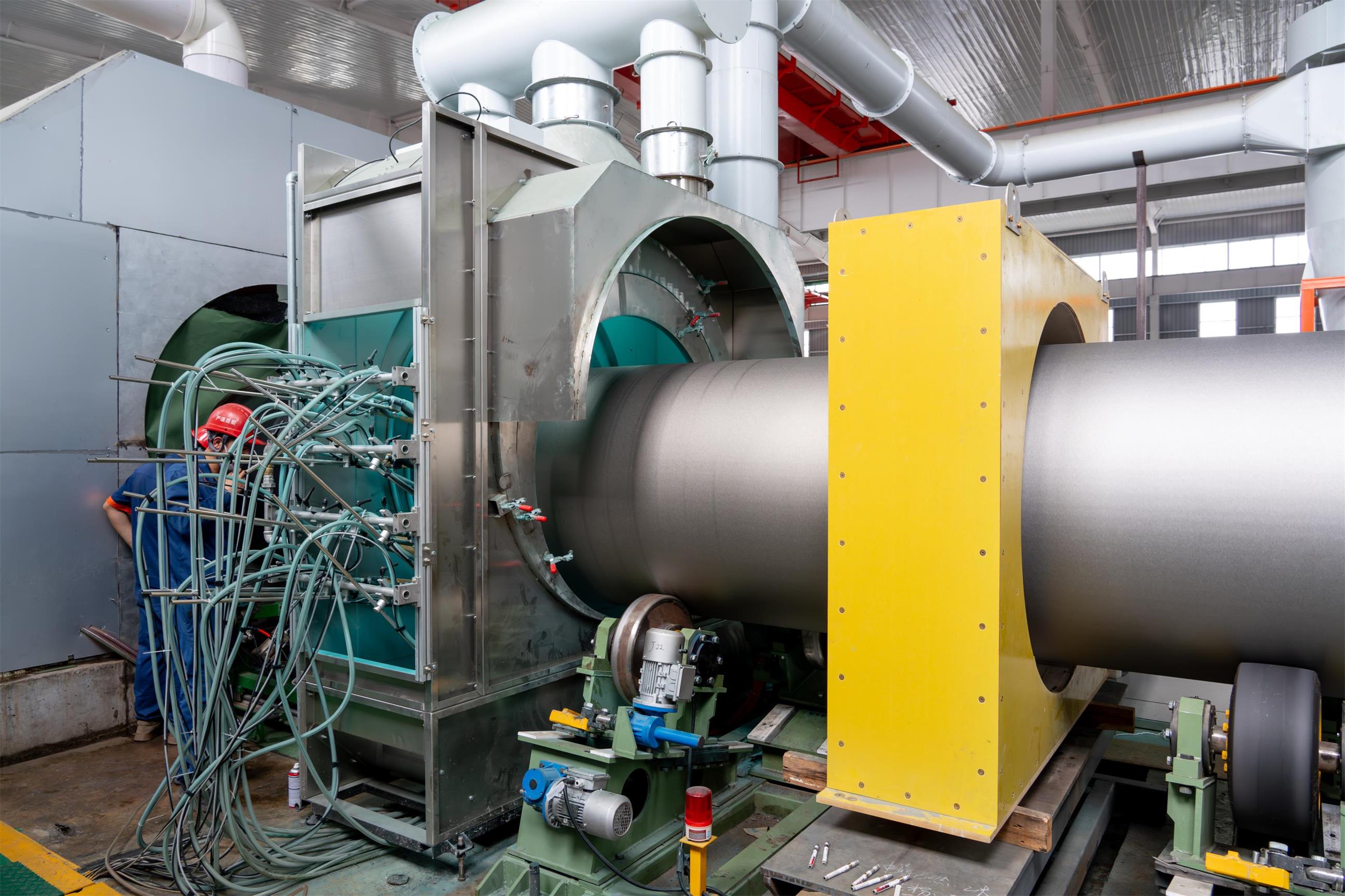 眾所周知,大口徑與厚壁并存的鋼管防腐作業(yè)極具挑戰(zhàn)性。尤其在 1219mm 管徑、45mm 壁厚的條件下,防腐層的均勻性、附著力與整體成型精度,都對工藝和設(shè)備提出了更高要求。