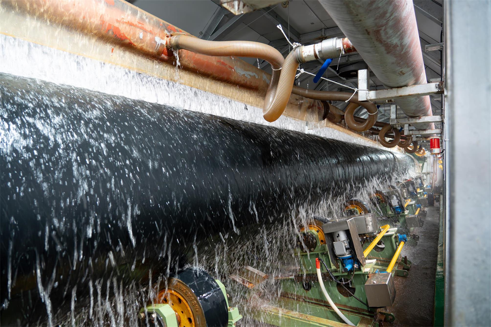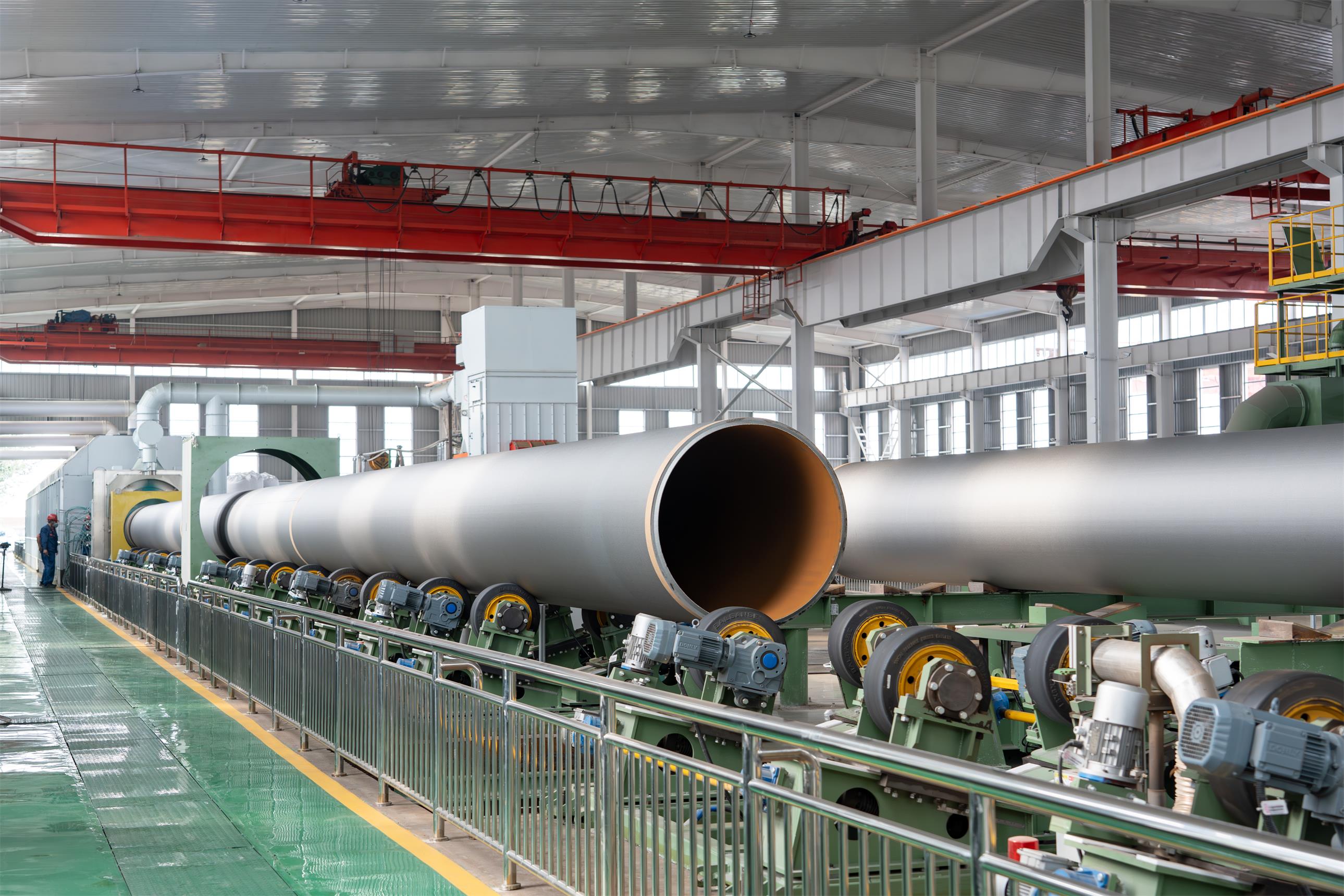 華洋防腐車間再破極限!近日,一批12米長、1219mm口徑、45mm 壁厚的直縫埋弧焊鋼管,在華洋防腐車間順利完成 3PE 防腐處理,各項指標均嚴格達標。