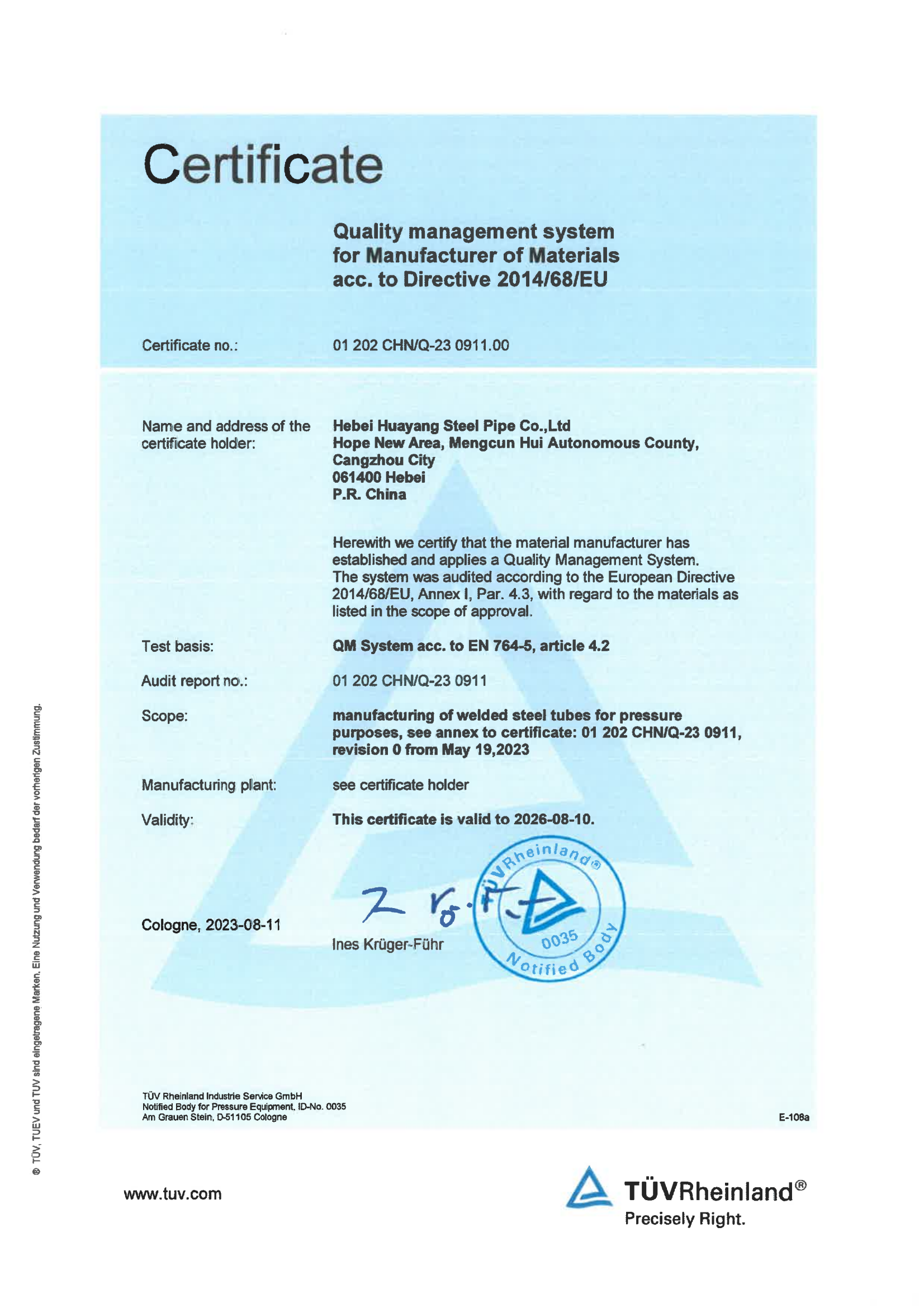 公司現(xiàn)有17條新型的自動(dòng)化鋼管生產(chǎn)線(xiàn),包括Φ73-660.4高頻直縫焊鋼管生產(chǎn)線(xiàn)14條、Φ406.4-Φ1422.4直縫雙面埋弧焊鋼管生產(chǎn)線(xiàn)3條,并配備有一條防腐生產(chǎn)線(xiàn),可進(jìn)行3PE、2PE、FBE、2PP、3PP防腐處理,同時(shí)還可提供鋼管深加工服務(wù)。公司擁有先進(jìn)的理化實(shí)驗(yàn)室,可承擔(dān)鋼管的各項(xiàng)物理及化學(xué)檢測(cè)與試驗(yàn)。公司先后取得了ISO9001質(zhì)量管理體系認(rèn)證、ISO14001環(huán)境管理體系認(rèn)證、ISO45001職業(yè)健康安全管理體系認(rèn)證、特種設(shè)備制造許可證、API5L和API2B認(rèn)證證書(shū)、歐盟CE認(rèn)證、俄羅斯GOST認(rèn)證、中海油入網(wǎng)證、安全生產(chǎn)標(biāo)準(zhǔn)化二級(jí)企業(yè)等標(biāo)準(zhǔn)質(zhì)量體系認(rèn)證。